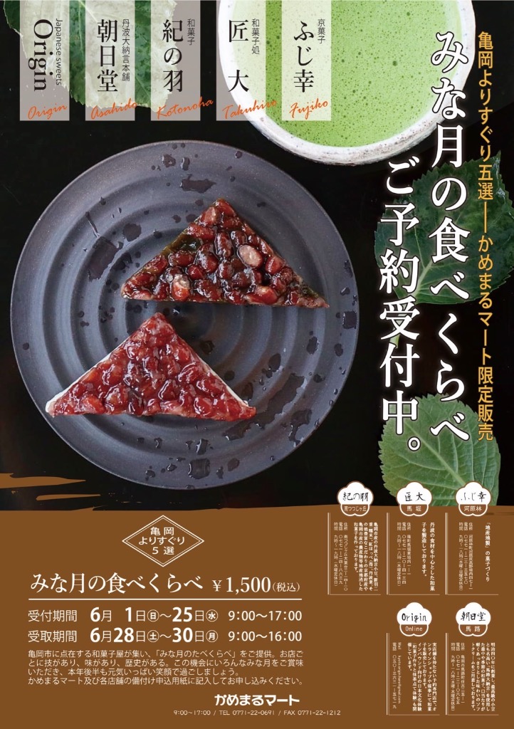 亀岡市の和菓子屋5店舗による、みな月の食べ競べセットです。ご予約受付中です。